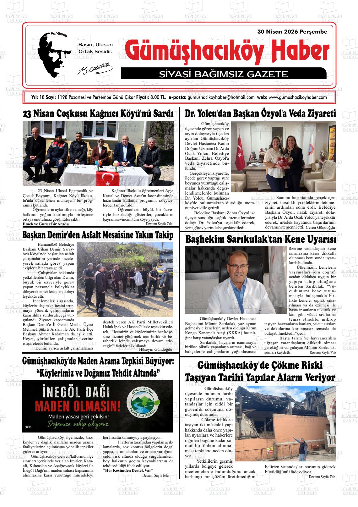 Amasya Yerel Gazeteleri 30 Nisan 2026, Perşembe Günü Manşeti