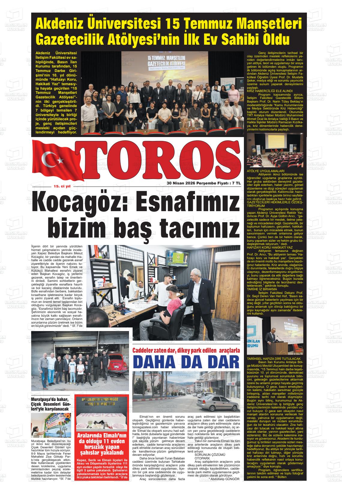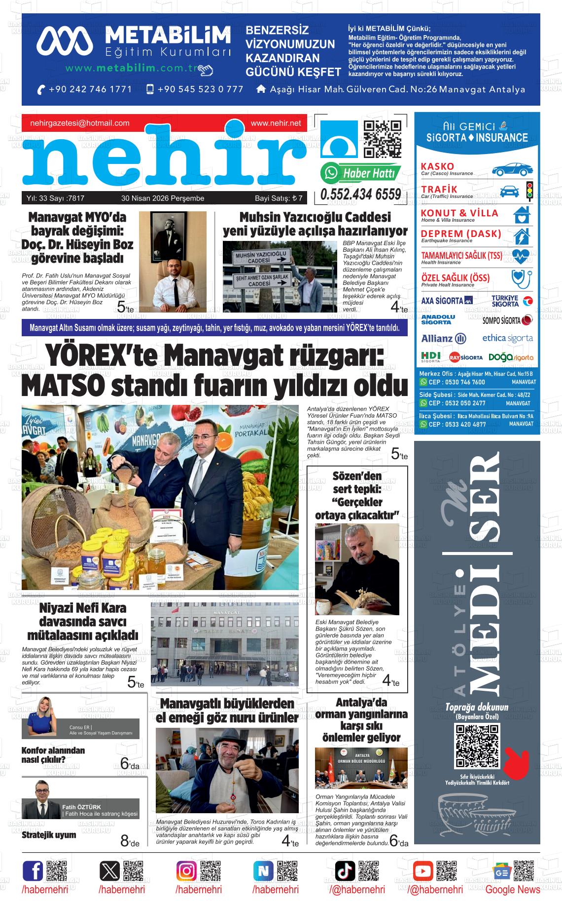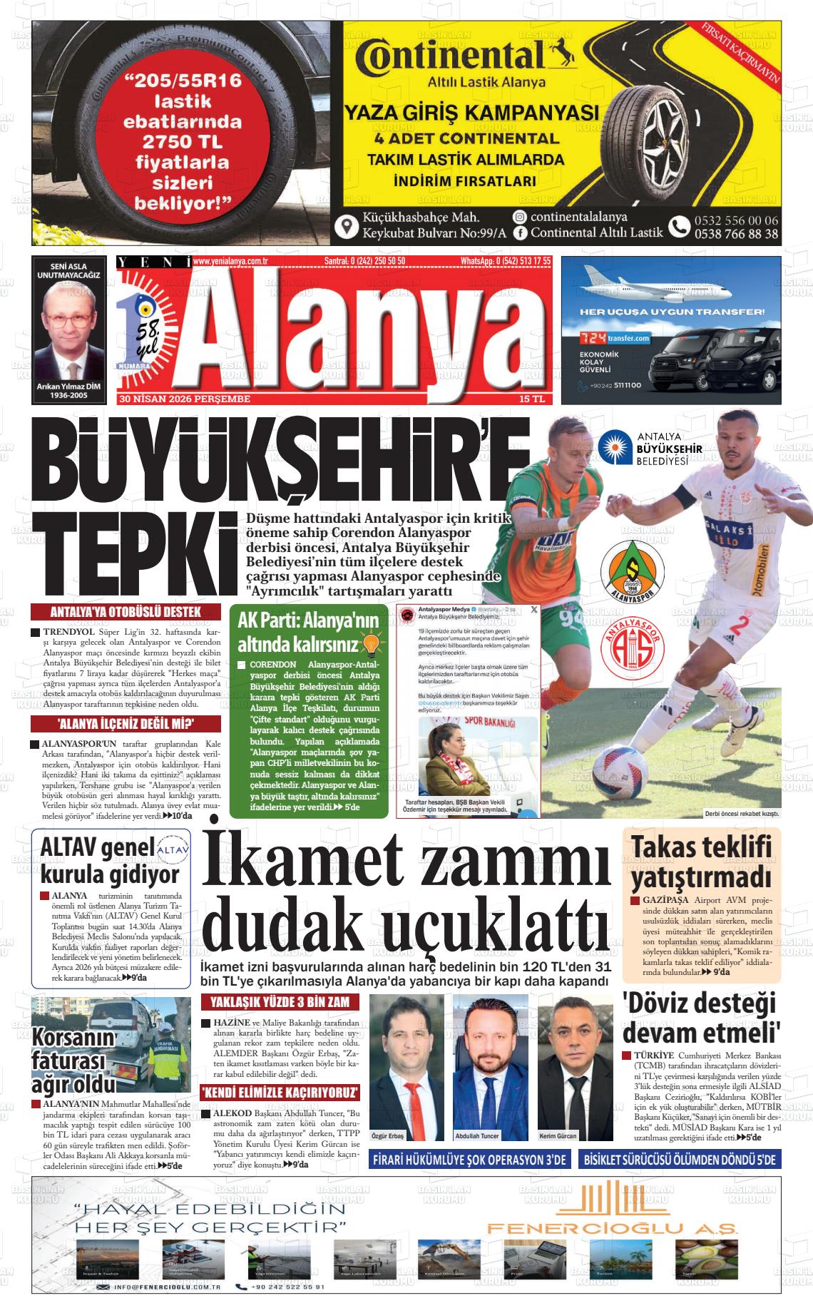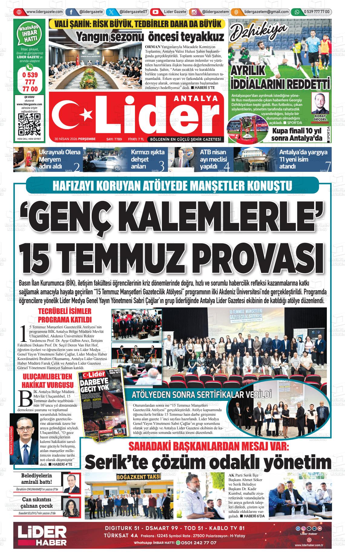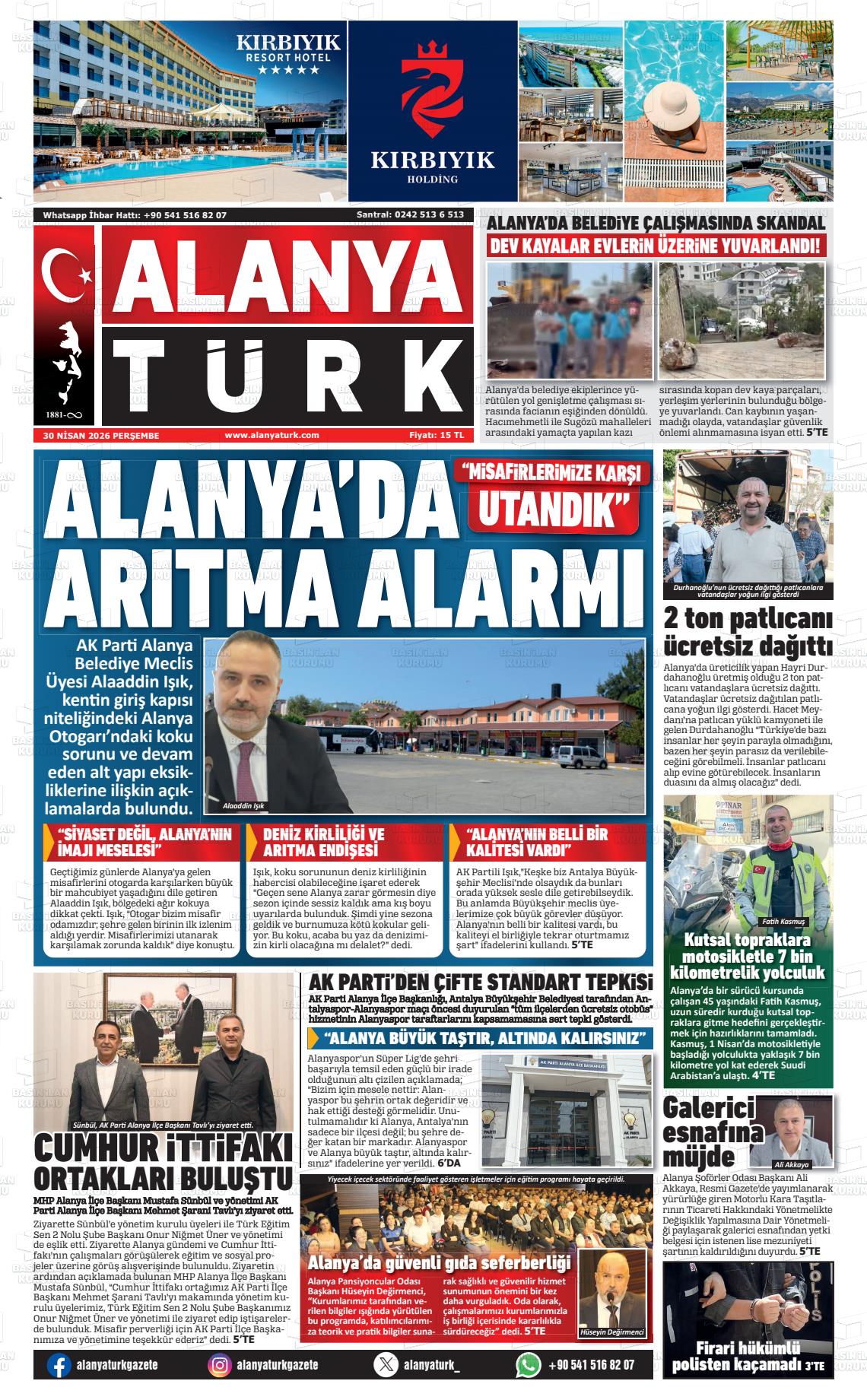 Antalya Yerel Gazeteleri 30 Nisan 2026, Perşembe Günü Manşeti