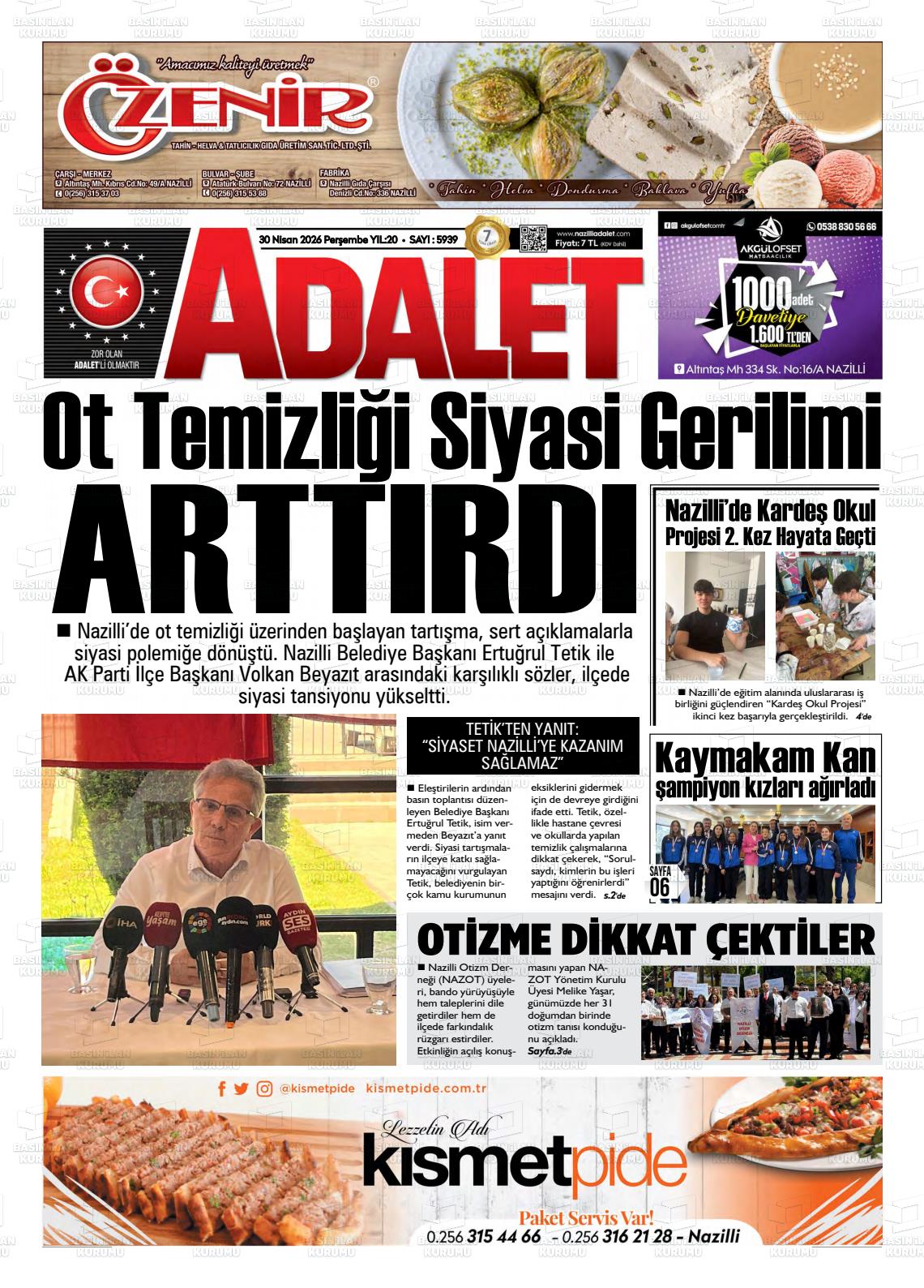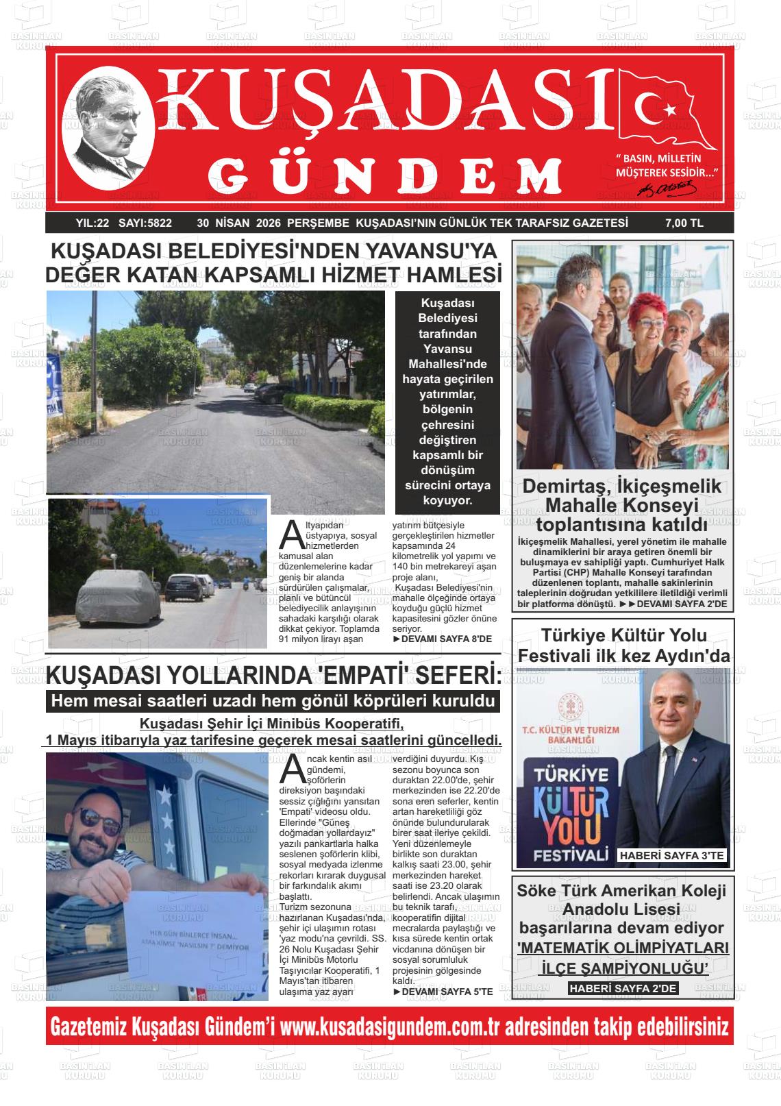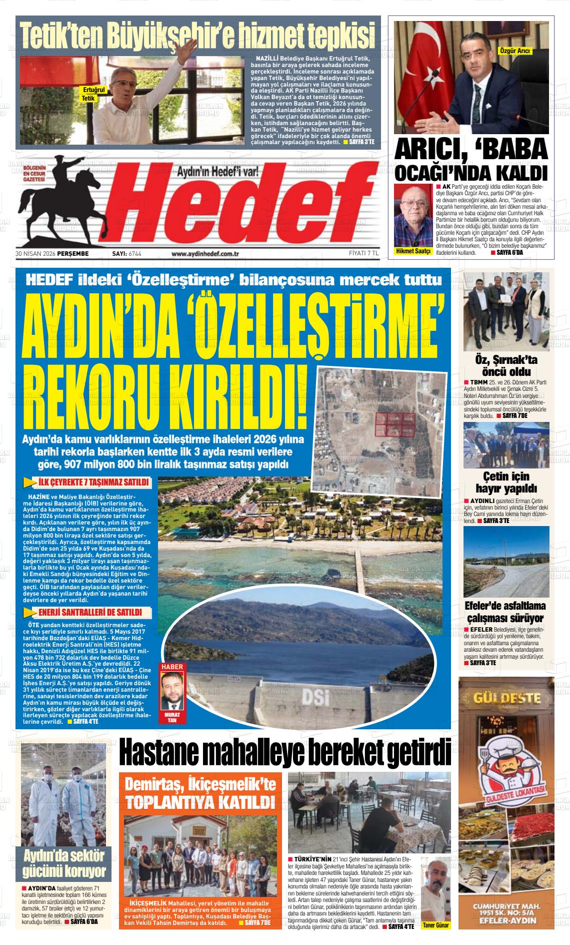 Aydın Yerel Gazeteleri 30 Nisan 2026, Perşembe Günü Manşeti