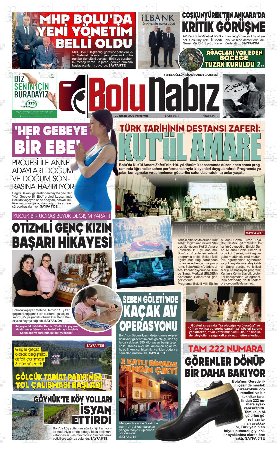 Bolu Yerel Gazeteleri 30 Nisan 2026, Perşembe Günü Manşeti