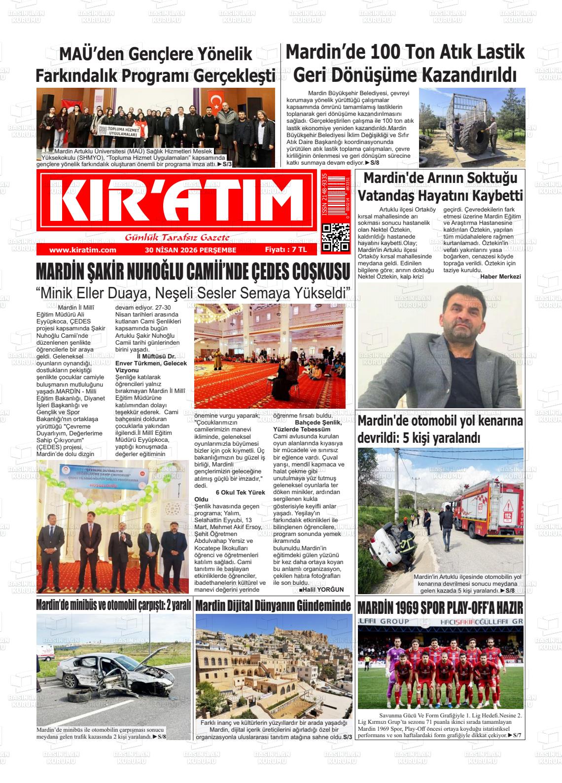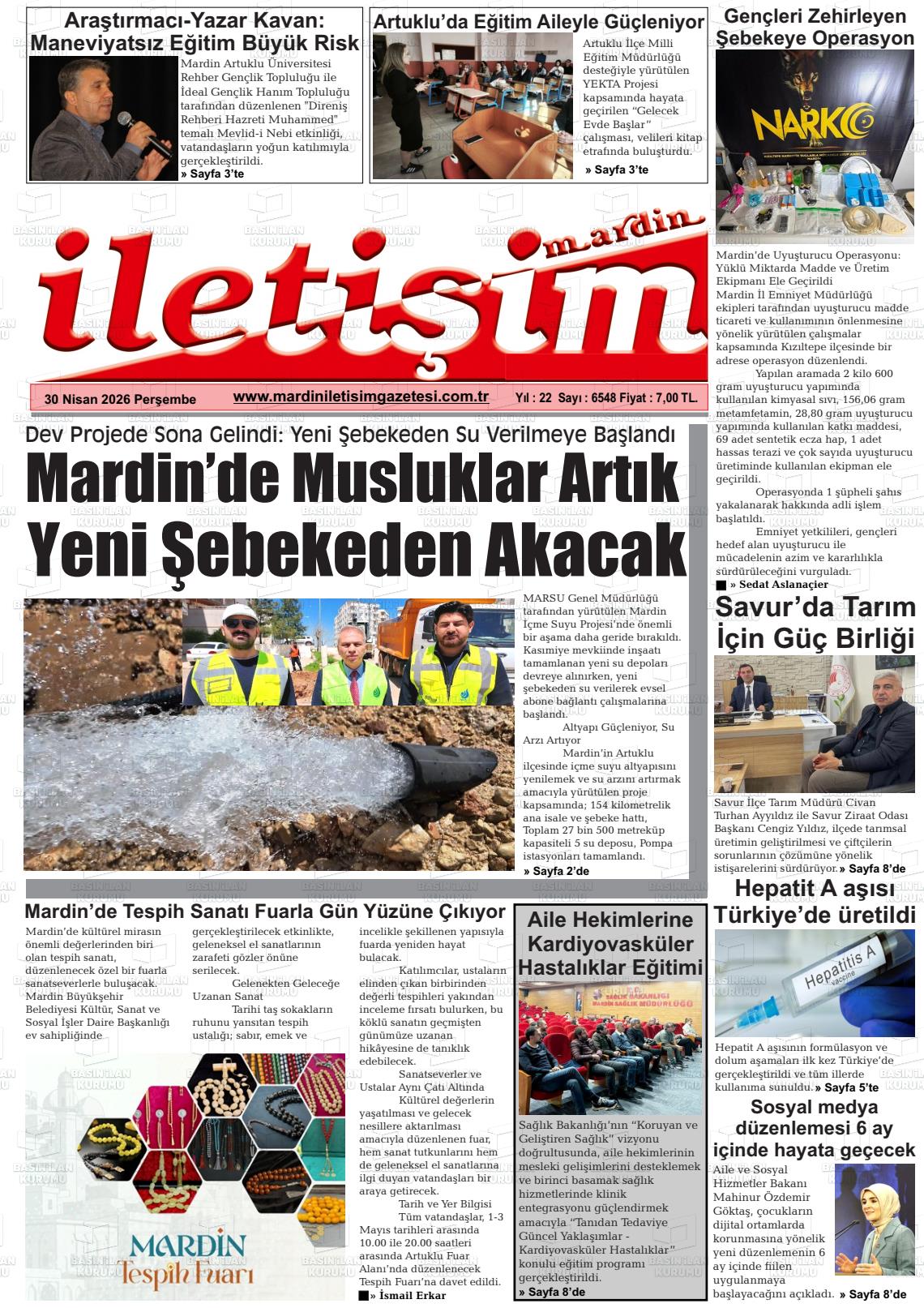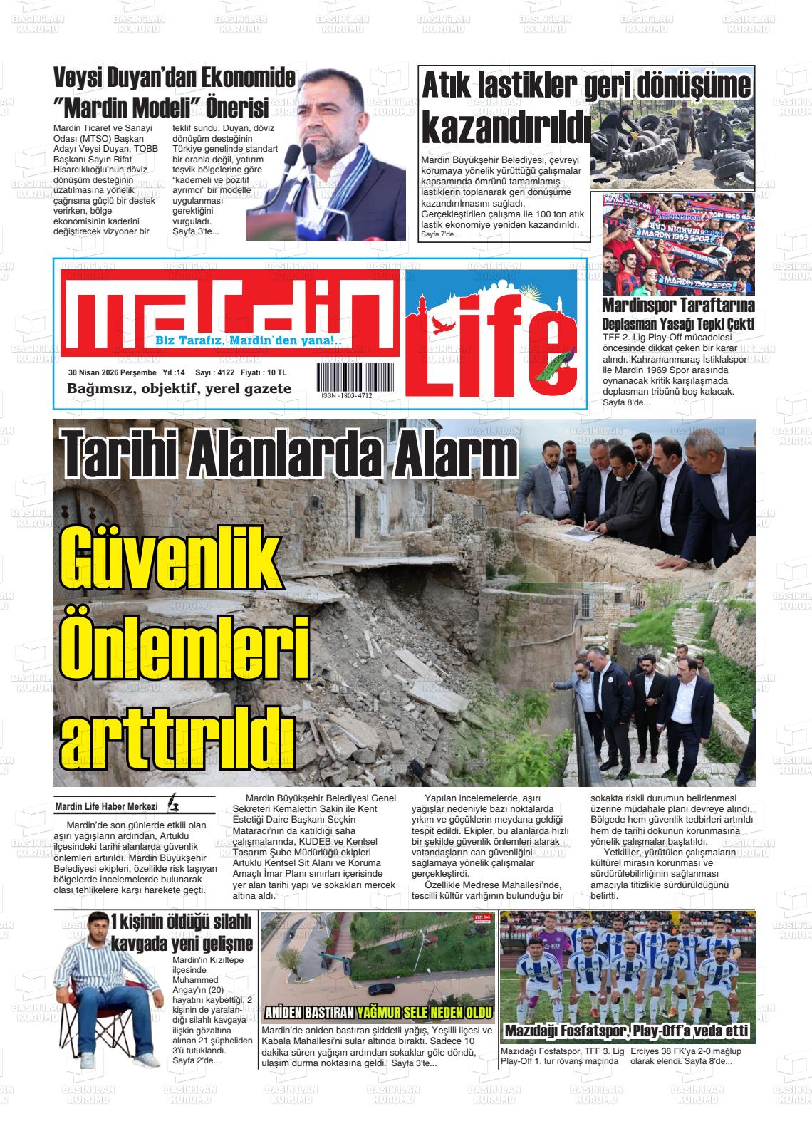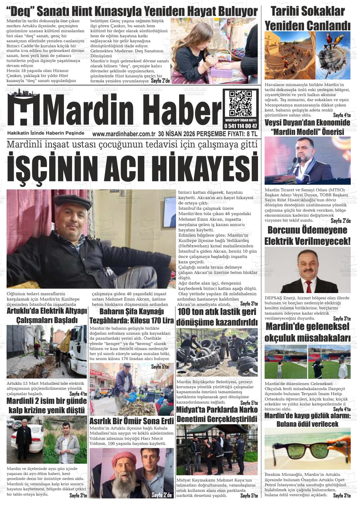 Mardİn Yerel Gazeteleri 30 Nisan 2026, Perşembe Günü Manşeti